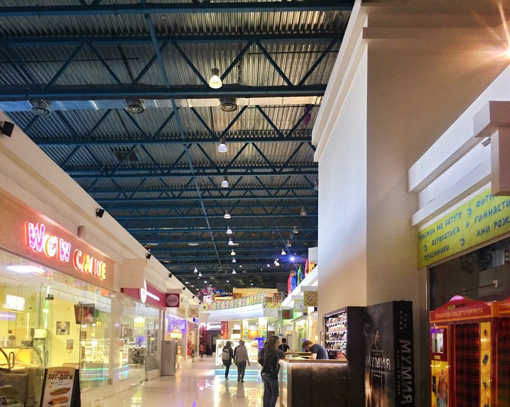 Это торговый центр с просторными рядами и большим выбором товаров для всей семьи. А если вы решите перекусить, то здесь же расположен фуд-корт с хорошим выбором еды.